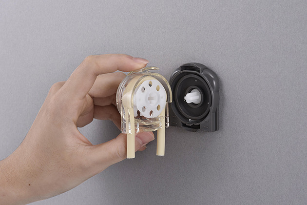 Das Gehäuse kann ohne Verwendung von Werkzeugen einfach montiert und entfernt werden. So kann auch eine Wartung wie beispielsweise ein Schlauchaustausch schnell durchgeführt werden.